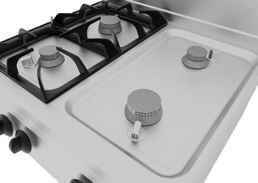 Bruciatori disponibili nelle versioni 3,85 kw, 5,7 kw, 7,7 kw. Bruciatori e spartifiamma in ghisa, completamente removibili per un agevole fase di pulizia.